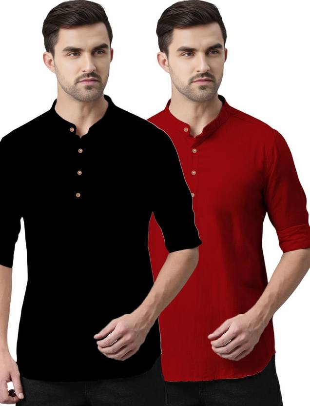 GUYS HUBB Men Solid Straight Kurta (Beige)