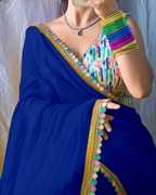 Edina Solid/Plain Bollywood Georgette Saree (Yellow)