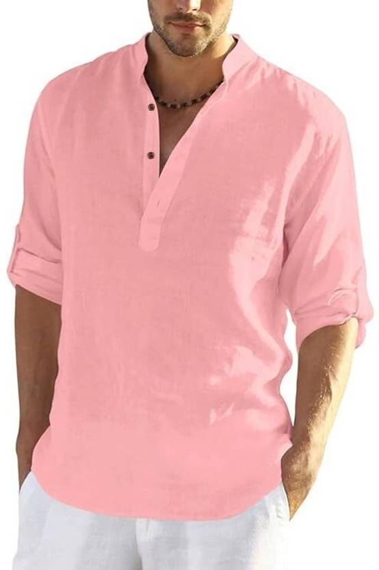 Men Solid Pure Cotton Straight Kurta (Pink)
