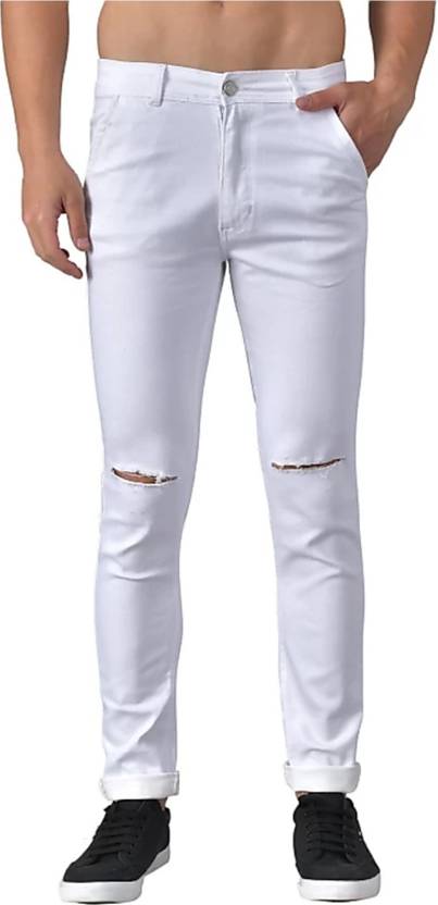 Men Slim Mid Rise White Jeans