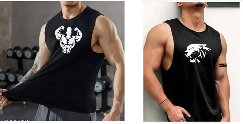 Pack of 2 Men's Black and body Bulider & loin Printed Vest / Ganji / sando Men Vest