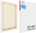 Eduway 16x20 IN 10Oz. Primed Pre Stretched Canvas with Wooden Frame for Painting~ Cotton Medium Grain Pre Stretched Canvas (Set of 2) (White)