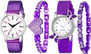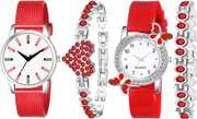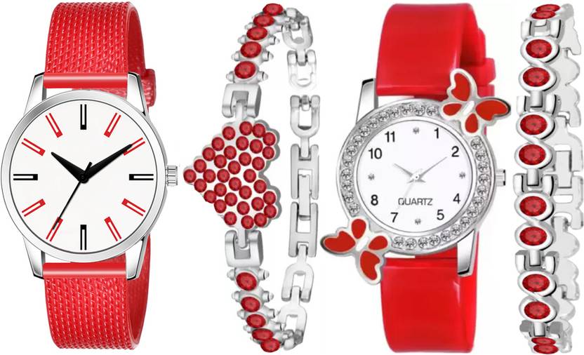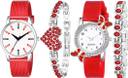 New Stylish Red Design-Buterfly White Dial Watches & 2 Bracelet For Women