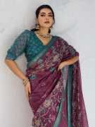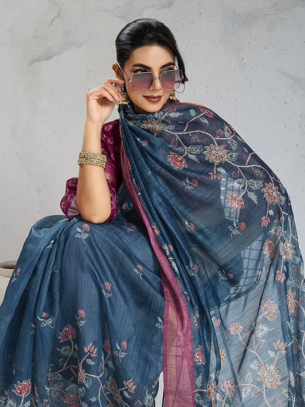 Pure Cotton Bollywood Digital Print & Printed & Woven Blue Color Saree