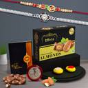 This set includes a specially curated Rakhi combo intended to celebrate the bond between siblings. It comes with a stylish designer Rakhi, ensuring it is contemporary and attractive. The combination of traditional and modern elements aims to make the celebration even more memorable. The entire set is thoughtfully packed to provide a complete festive experience.