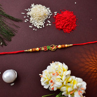 The set includes Roli and Chawal, an essential part of the Rakhi ceremony. Also, it comes with two coins and a greeting card, further enriching the gift. The carefully crafted elements are intended to enhance the festive spirit. Each item in the set is chosen to complement the Rakhi ritual and provide a comprehensive gifting solution.