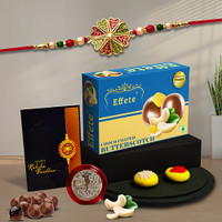 The highlight of this rakhi combo is its elegant design, specifically crafted to suit various preferences. The Rakhi features intricate patterns and a sophisticated aesthetic, making it a great choice for the occasion. Along with tradition, it offers a stylish touch, adhering to the modern taste while holding on to cultural roots. The high-quality materials used ensure durability. An ideal blend of tradition and modernity, this rakhi adds a touch of elegance to the festival.