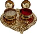 Effigy Onlinehub Brass Nakshi Heart Shaped Karanda Puja Rituals Roli Chawal Akshat Dibbi Brass (1 Pieces, Gold)