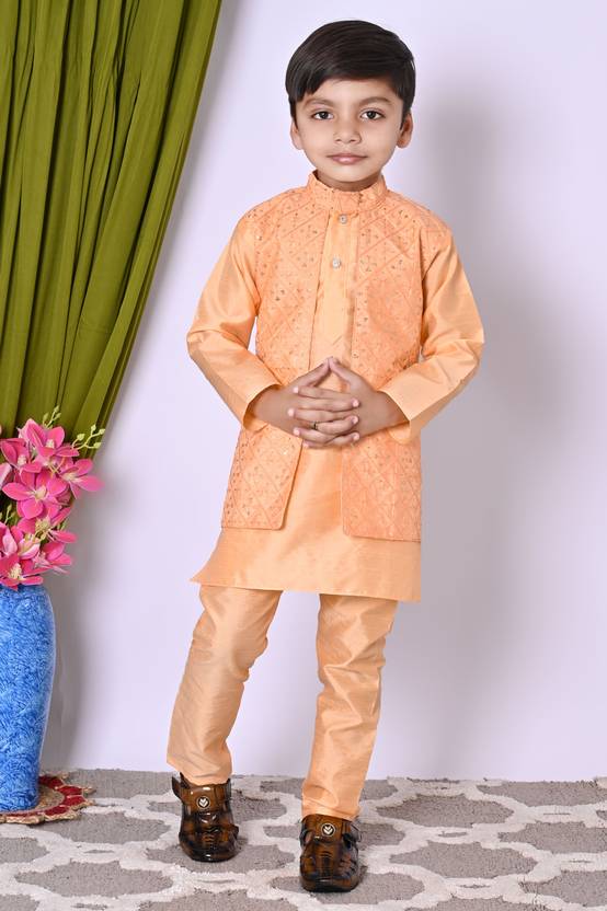 EFL FASHION Boys Festive & Party Kurta, Waistcoat and Pyjama Set (Orange Pack of 2)