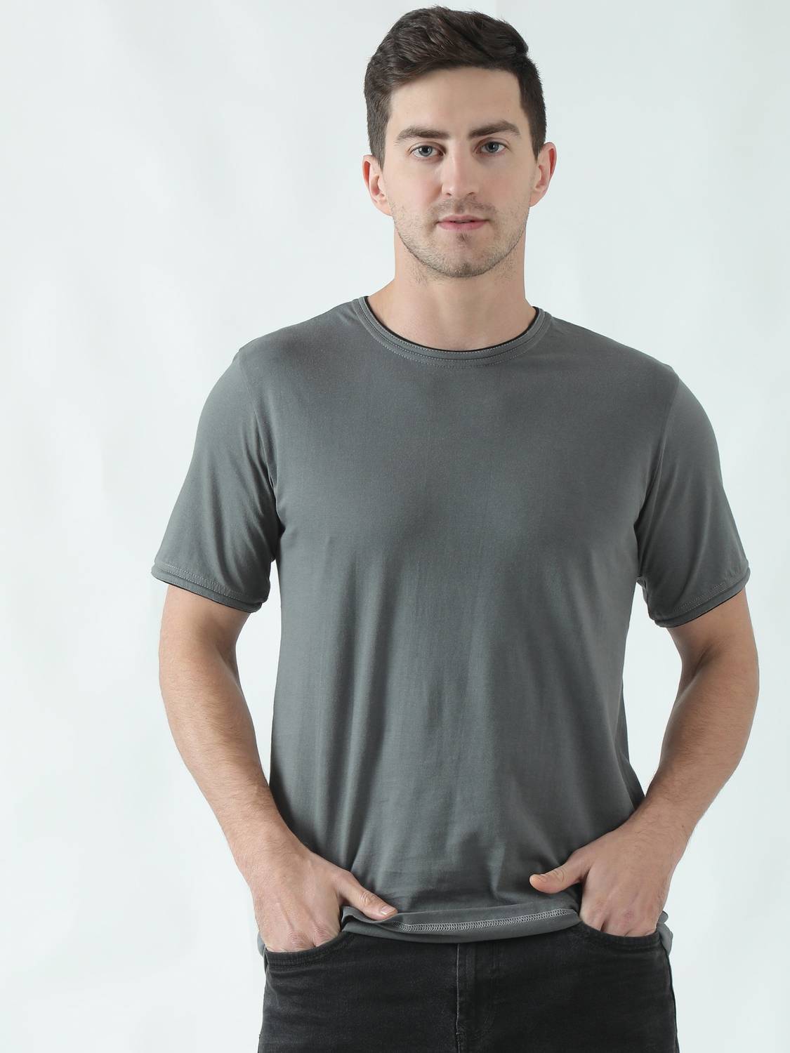 THE EG STORE Solid Men Round Neck Grey T-Shirt
