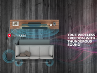 This fully wireless soundbar delivers powerful surround sound without the clutter of wires. Its rear speakers are wirelessly connected, giving you flexibility in placement to create an improved audio setup. Moreover, with excellent sound and easy setup, this system elevates your home entertainment experience.