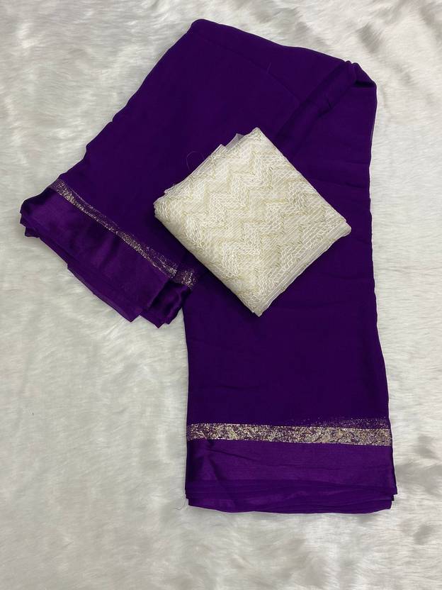 Egretail Solid/Plain Bollywood Viscose Rayon Saree (Purple)