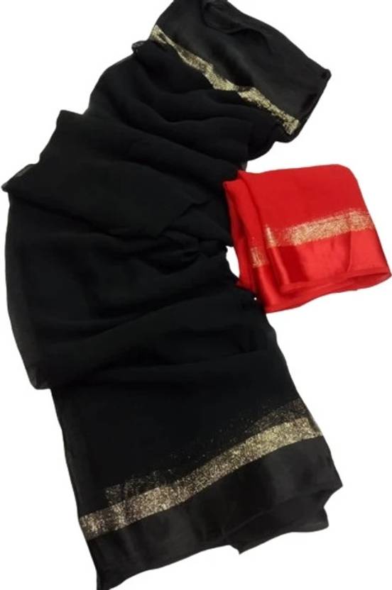 Solid/Plain Daily Wear Viscose Rayon Saree (Black)