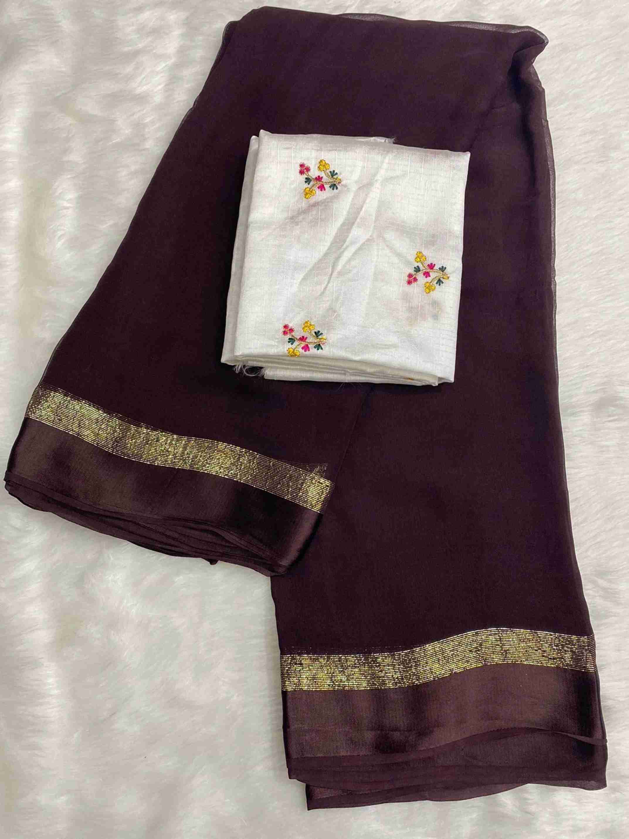 Solid/Plain Bollywood Viscose Rayon Saree (Brown)