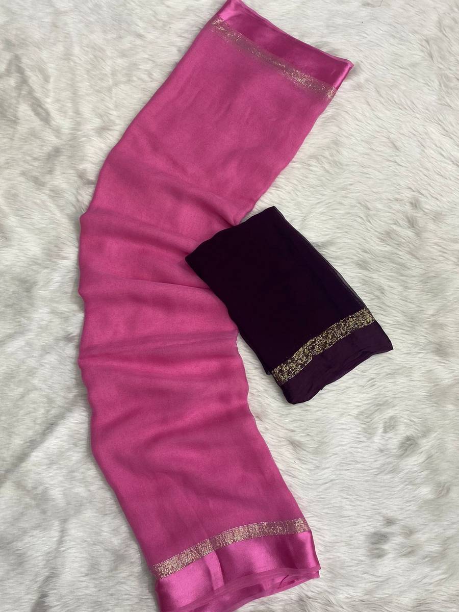 Solid/Plain Bollywood Viscose Rayon Saree (Pink)