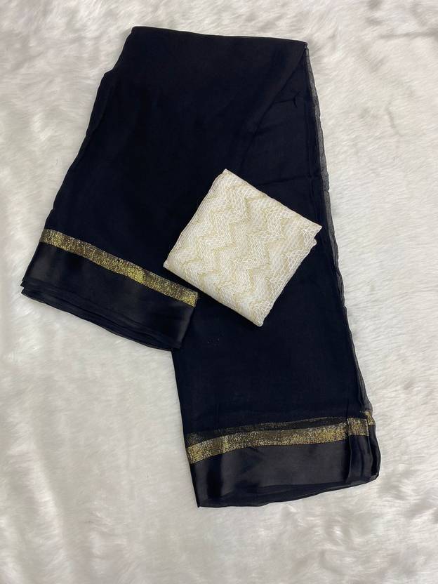 ELEGENCE FAB Solid/Plain Bollywood Viscose Rayon Saree (Black)