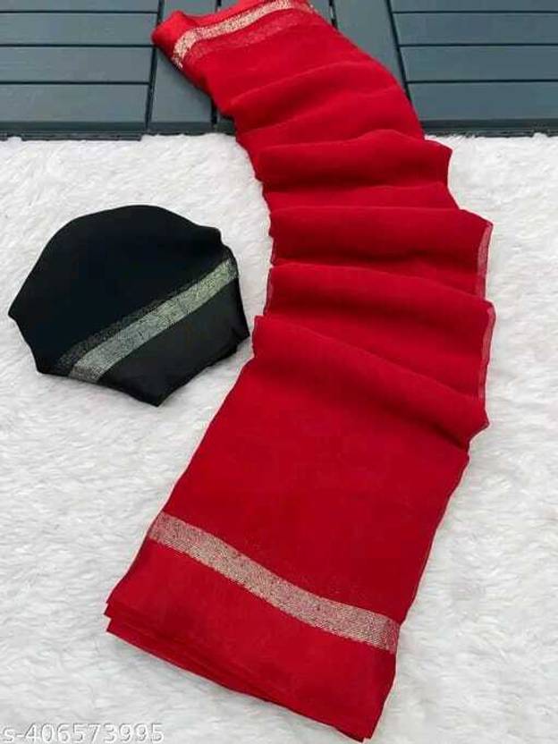 Egretail Solid/Plain Bollywood Viscose Rayon Saree  (Red)