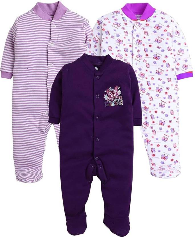EIO Romper For Baby Boys & Baby Girls Striped, Solid, Printed Pure Cotton (Purple, Pack of 3)