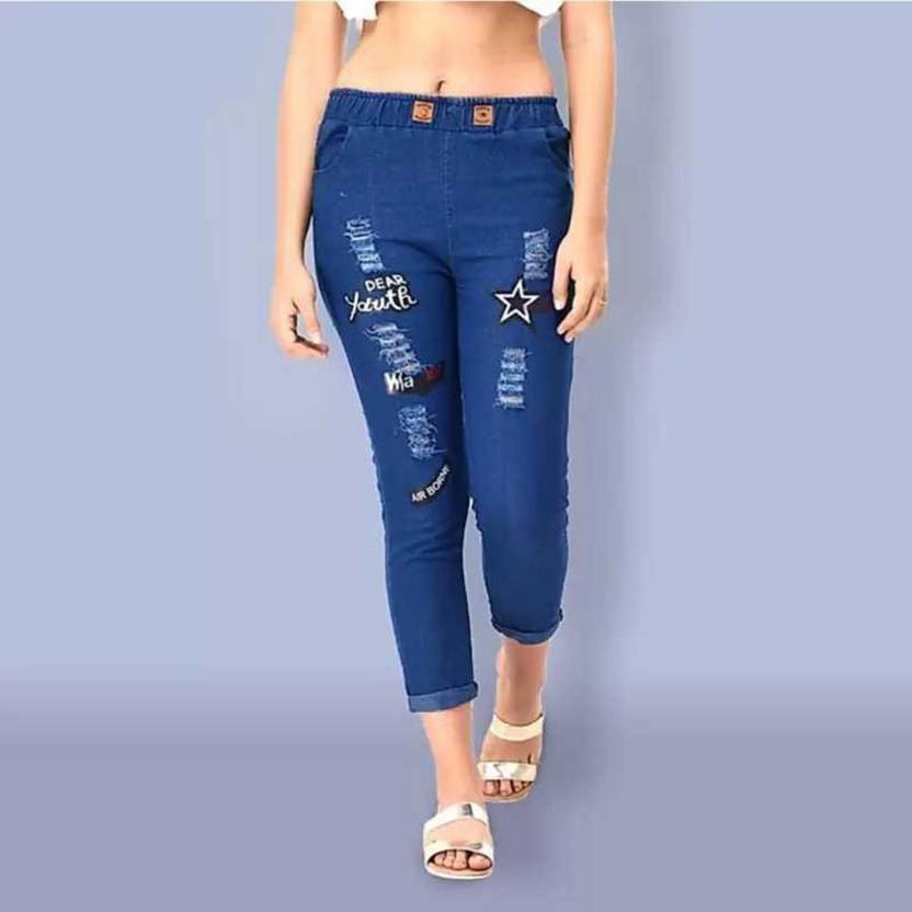 Women Jogger Fit Mid Rise Dark Blue Jeans