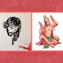 EJAart Trendy Set of 2 Wall Hangings Jesus+Ram Bhakt Hanuman Pack of 2 (Green)