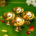 Embrace the sacred essence of your daily pooja rituals with our premium brass diyas, meticulously crafted for both durability and elegance. Each small diya for puja is expertly fashioned from 100% pure brass, ensuring longevity and a graceful presence in your pooja set. This set of 4 deepam kundulus provides you with a complete solution for your daily prayers or special occasions, exuding a sense of divine tranquility with every flicker of light. Our brass vilakku for pooja stands as a stalwart companion during daily puja rituals, offering stability and support to the vilakku set, ensuring safety and preventing any accidental tipping. Adorned with traditional designs, our brass deepas signify a deep-rooted spiritual connection with the divine, enriching the ambiance of your pooja room or mandir with their intricate detailing and timeless charm. Symbolizing the sacred union of Jeevatma and Paramatma, our peetal kaa diyaa adds a profound spiritual dimension to your worship space, fostering a sense of peace and serenity during your devotional practices. Share the blessings of light and spirituality by gifting our pithalai vilakku for pooja to your loved ones, a thoughtful present suitable for housewarmings, weddings, Diwali, or religious festivals. Cleaning our brass diyas is effortless, ensuring their lustrous shine for years to come. Simply use a mixture of tamarind, salt paste, lemon, or pitambari to remove any accumulated grease, avoiding detergents to preserve their natural gleam. While prolonged use may lend a subtle greenish tint to these divine artifacts, their spiritual significance remains undiminished, illuminating your sacred space with timeless grace and reverence.