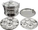 Stainless Steel Idly Panai with 3 Idly Plates - 21 idlies and 1 Steamer Plate