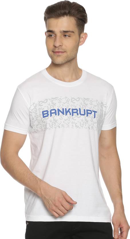 Bankrupt Men Printed Round Neck Organic Cotton White T-Shirt