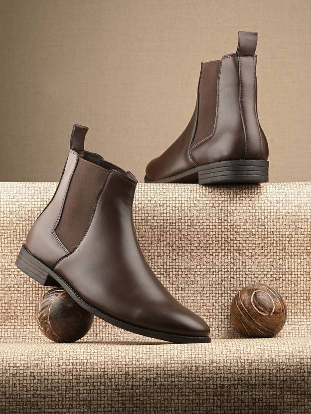 EL PASO Men Dark Brown Faux Leather Casual Chelsea Boots