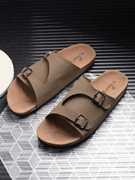 EL PASO Men's Black Faux Leather Casual Slip On Sandals