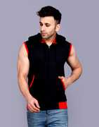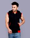 ELABOT Solid Men Hooded Neck Red, Black T-Shirt