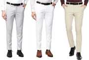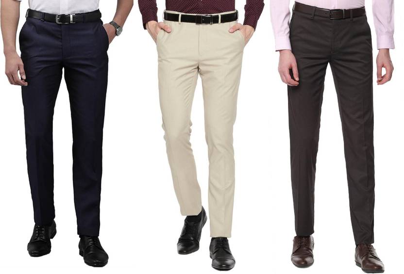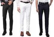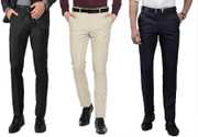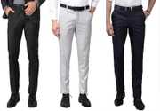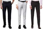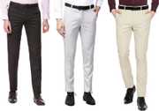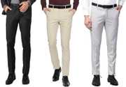 ELANHOOD� men�s FORM�L TROUSERS Pack of 3 front slim fit Formal Trousers made of fine poly viscose specially crafted for stylish look. ELANHOOD brings to you this formal Trouser with a regular fit that can be worn to such places. It features front slant pockets and two back pockets. The button and zip closure is easy to use while the slim fit keeps you in style. Model wears a size 32 and his height is 6 ft. You can try ELANHOOD Form�L Trouser to match your professionalism. Get the perfect blend of comfort and style by wearing these beige Slim Fit P�nt.