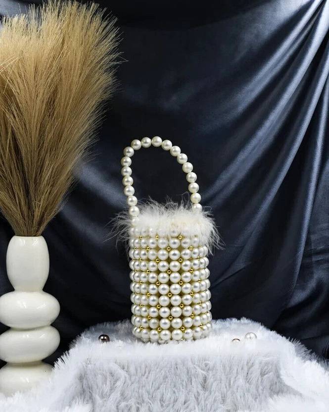 ā Pearl beaded bag handcrafted with synthetic pearls by an Indian artisan.