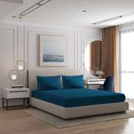Elarra Cotton King Sized Bedding Set (Sapphire Blue, 1 Bedsheet, 2 Pillow Covers)