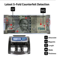 Featuring a robust five-fold counterfeit detection system, this note counting machine identifies fake notes during counting. This machine uses UV, MG, IR, and watermark sensors to detect counterfeit currency and identify duplicate or chained notes. Also, its automatic start, stop, and clear functions simplify operation, while the LCD turns red to indicate suspected fake notes, enhancing confidence in cash handling.