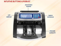 Designed with an arranged front interface, this machine includes a visible LCD screen, power switch, and an external display socket. Real-time monitoring is available through the four-digit counting and three-digit batch displays. Furthermore, inbuilt ventilation vents and a sturdy handle support safe operation over extended periods. Besides, the adjustable hopper and stacker can hold up to 200 notes each, allowing continuous processing without frequent interruptions.