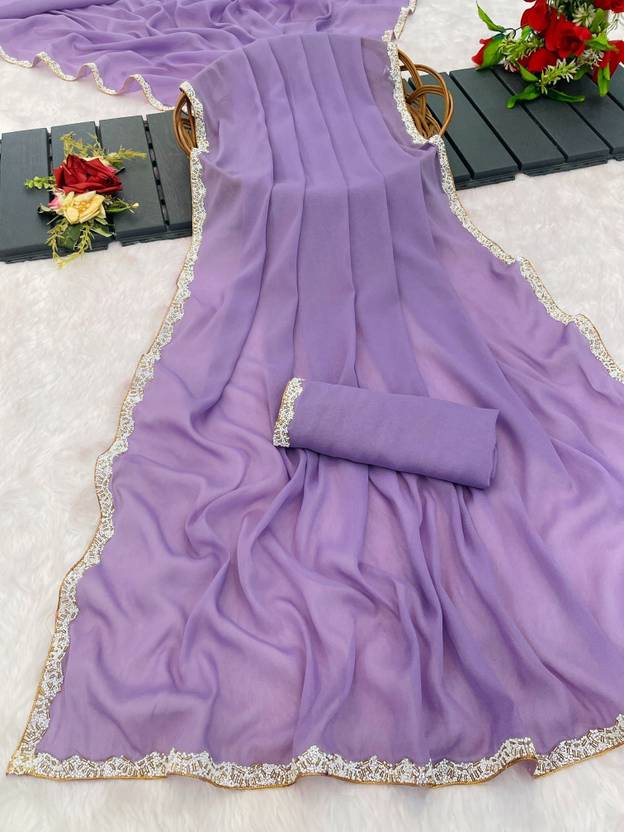 MOTILACE01-Gerogette Simmer Fabric Full Solid\ Plain With Small Moti Lace Side Border New Trending Saree