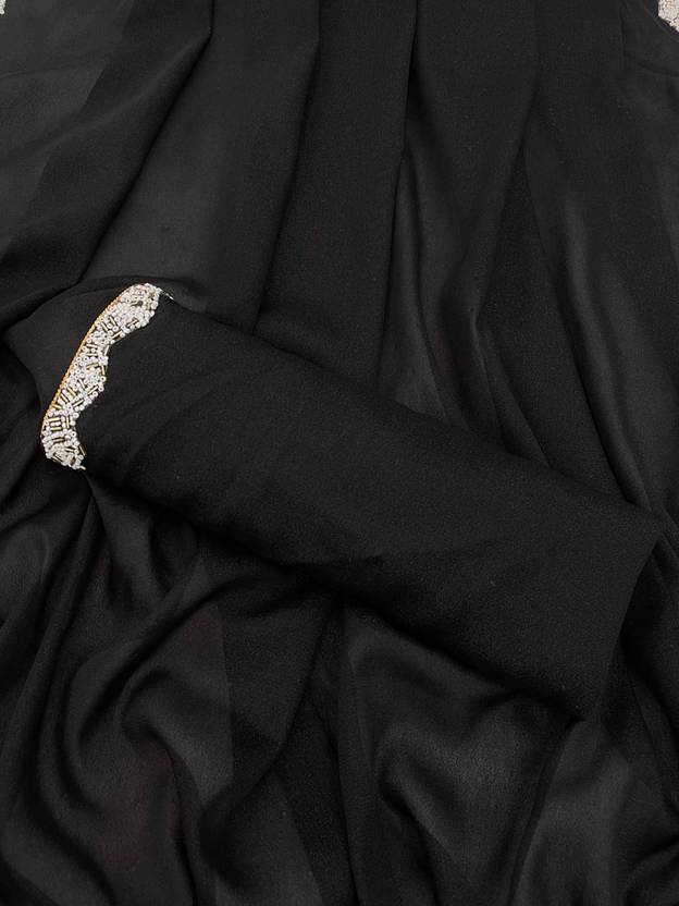 VRISE Solid/Plain Bollywood Georgette Saree (Black)