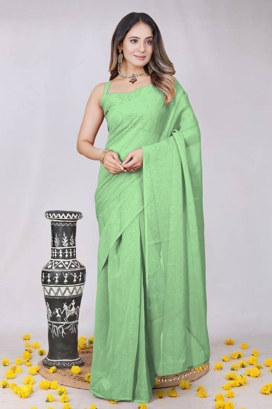 Ready to Wear 1 Minute Pre Pleated Solid/Plain With Golden Latkan Border Pallu.Elevate your ethnic style with this beautiful solid/plain simmir saree. Featuring a soft fabric base, this saree is adorned with delicate golden border work in vibrant hues, giving it a refreshing and elegant look. Pair this saree with a contrasting blouse and minimal jewelry to let the hand-printed design stand out. Perfect for daytime events, festive celebrations, partyware saree, or casual gatherings, this saree adds an effortlessly chic vibe to your wardrobe. For lasting quality and to preserve the print, dry clean only. | black saree |black saree |party wear sarees|sarees|handprint saree|handpainted sarees|handpainted floral sarees