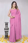 Ready to Wear 1 Minute Pre Pleated Solid/Plain With Golden Latkan Border Pallu