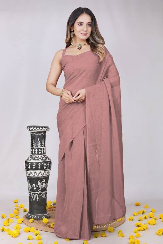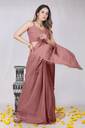 Ready to Wear Solid/Plain Pre Draped Saree Polyester Saree (Brown)