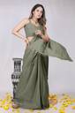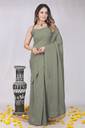 Ready to Wear 1 Minute Pre Pleated Solid/Plain With Golden Latkan Border Pallu