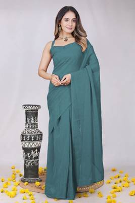 Elder Solid/Plain Pre Draped Saree Polyester Saree Reviews