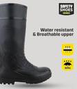PVC Industrial Gumboots—Built for tough industrial conditions, these gumboots deliver superior protection and comfort. Featuring a non-metallic toe, they provide lightweight safety without sacrificing strength. Their advanced design ensures resistance to oil, water, and acid, offering reliable defense against harmful substances in challenging workplaces. Whether you're working in wet, slippery, or chemical-laden environments, these gumboots combine durability, practicality, and safety to keep you moving confidently throughout the day