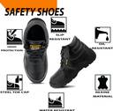 Step up your protection with these rugged steel-toe safety shoes, ideal for industrial, construction, factory, and warehouse environments. Designed with durability and comfort in mind, they feature a sturdy rexine upper material for resilience and long-lasting wear. The PVC sole provides excellent grip and stability, even on challenging surfaces, ensuring a secure footing at all times. The sleek black color adds a professional touch, making these shoes not only functional but stylish too. When it comes to safety and reliability, these steel-toe shoes have you covered.