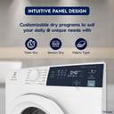 At the heart of this machine's efficiency are the advanced smart sensors. These intuitive sensors are a game-changer, accurately estimating the dryness level of your clothes and automatically adjusting the cycle duration accordingly. This feature not only ensures optimal drying but also significantly reduces wear and tear on your garments, extending their lifespan and keeping them looking new for longer.