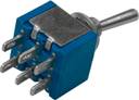 This is a small Bakelite body toggle switch. It is actuated by moving a lever back and forth to open or close an electrical circuit. This switch changes its position when actuated and will remain in that position until actuated again. This switch function as DPDT means it offers an ON/OFF switch by changing the terminal position. It consists of 8 pins, one is used for input and the other one is used as output at two on each side. This switch can withstand high room temperature. It has an amperage of 5A.