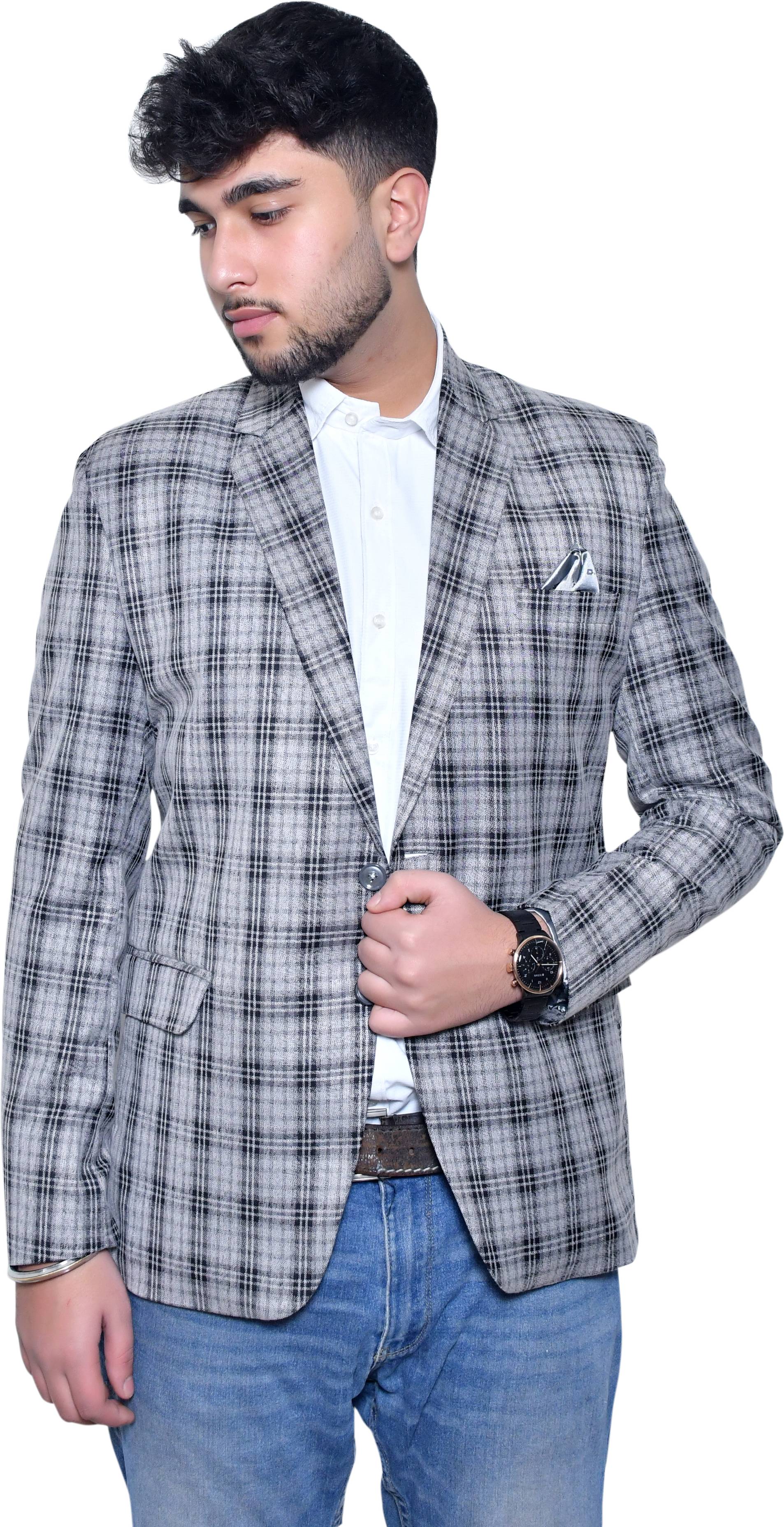 Men Checkered Single Breasted Formal Blazer (Grey)