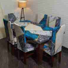 Magic Cover Polyester 6 Seater Printed Table Cover Grey, Pack of 7