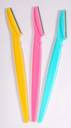 Eyebrow Razor removes the fine hairs of the eyebrow, neck and face as well as unnecessary hairs elsewhere. It features a stainless steel safety cover attached to each blade to protect a woman's sensitive skin and prevent blade from cutting too closely while shaving; even beginners can easily and safely use it.