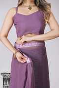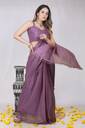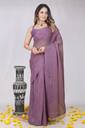 Triveni Fab Ready to Wear Solid/Plain Pre Draped Saree Polyester Saree (Purple)